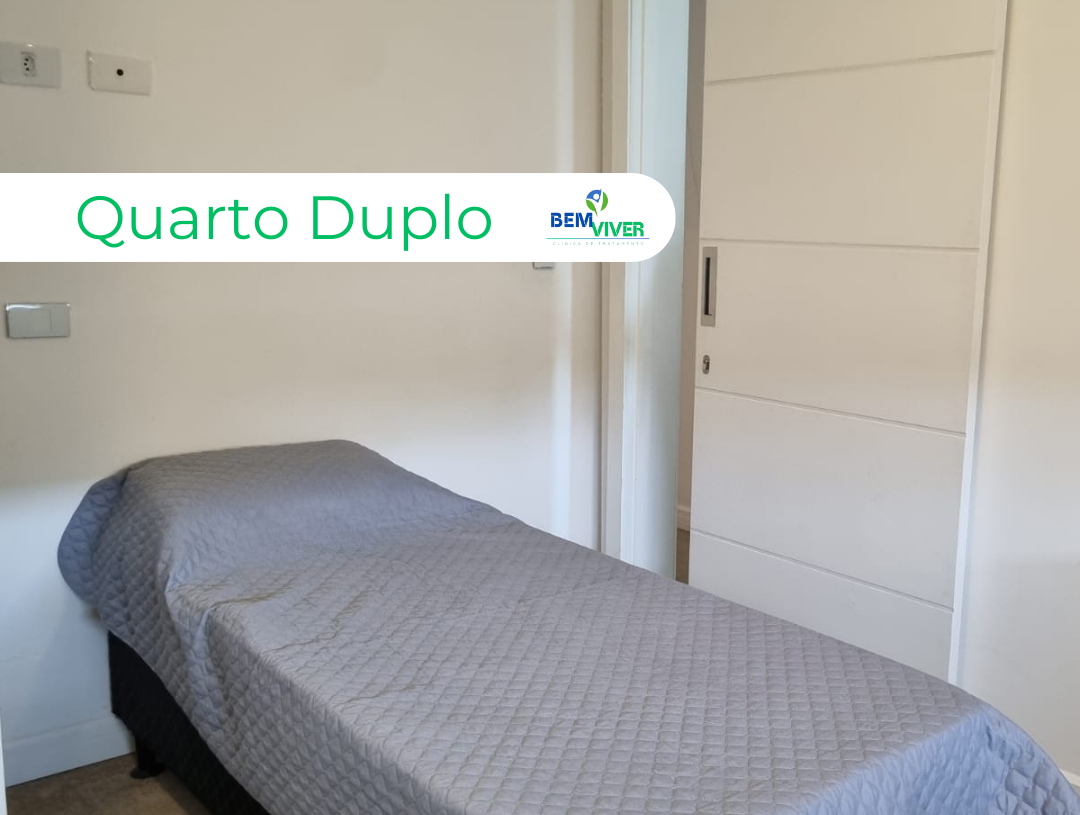 Quarto com duas camas box, ar condicionado, armários embutidos, televisão e banheiro privativo. Todos os quartos são higienizados diariamente, para trazer o maior conforto para os pacientes.